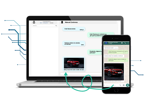 Creación de chat en su sistema interno, generando integración con la API oficial de WhatsappBusiness. Sistema inteligente de encolamiento de solicitudes, según tipo de requerimiento del cliente.