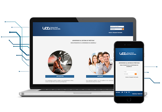 Sistema de prácticas con 5 años de desempeño, donde trabajan funcionarios UDD, profesores, alumnos y empresas. Además damos soporte, actualización, seguridad, mailing y otros servicios digitales.